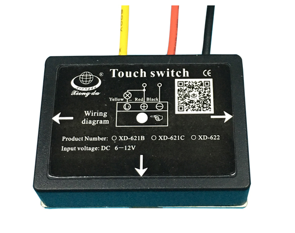 接线方式:红线和黑线接“+、-”DC:6-12V输入,红线再与黄线接灯具,黑色的触摸头安装在镜子的背面。 |