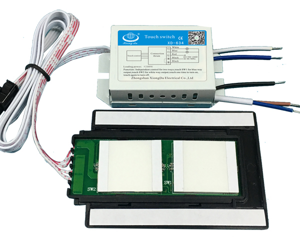 二组独立控制,触摸SW1对应蓝组输出,触摸SW2对应白组输出,一次触摸开灯,再次触摸关灯,依次循环。 |